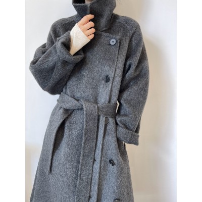 Autumn and winter new double-faced velvet coat, medium-length stand-up collar wool double-breasted coat for women
