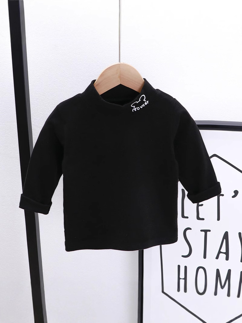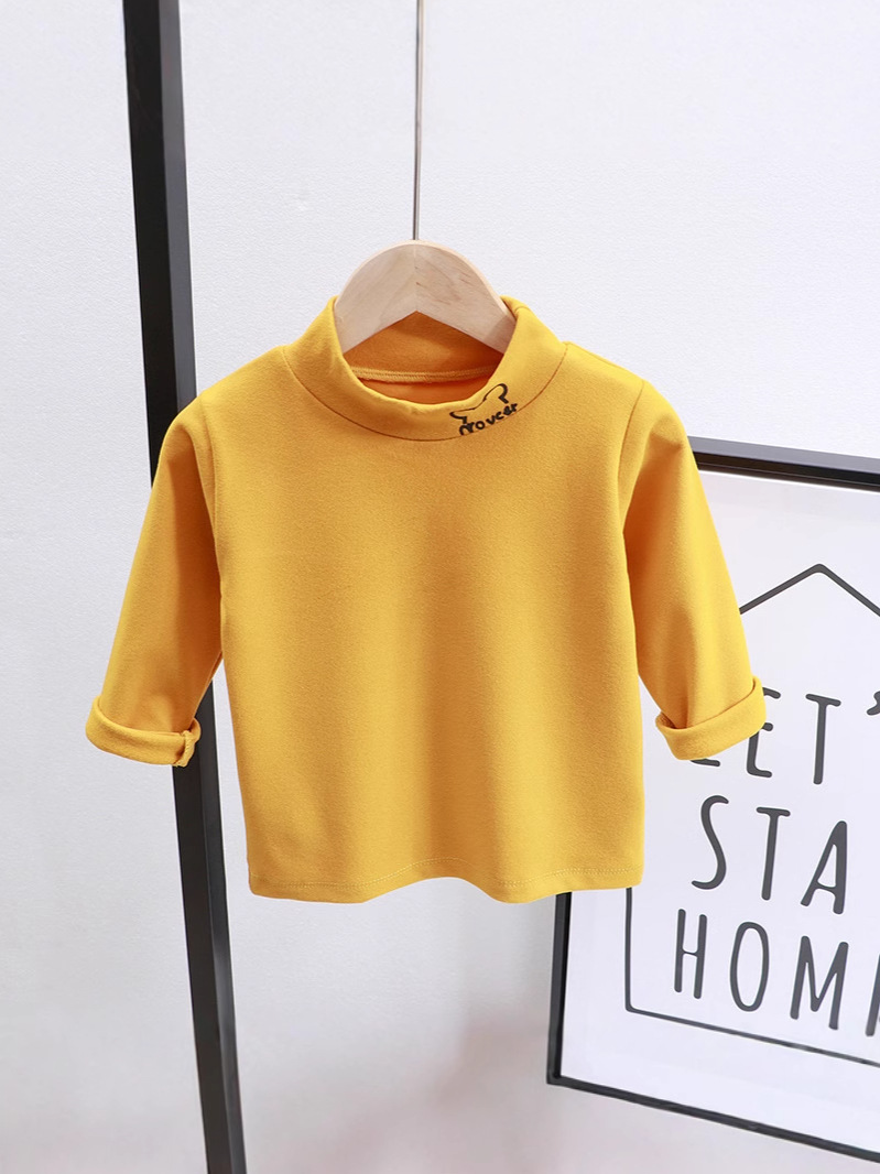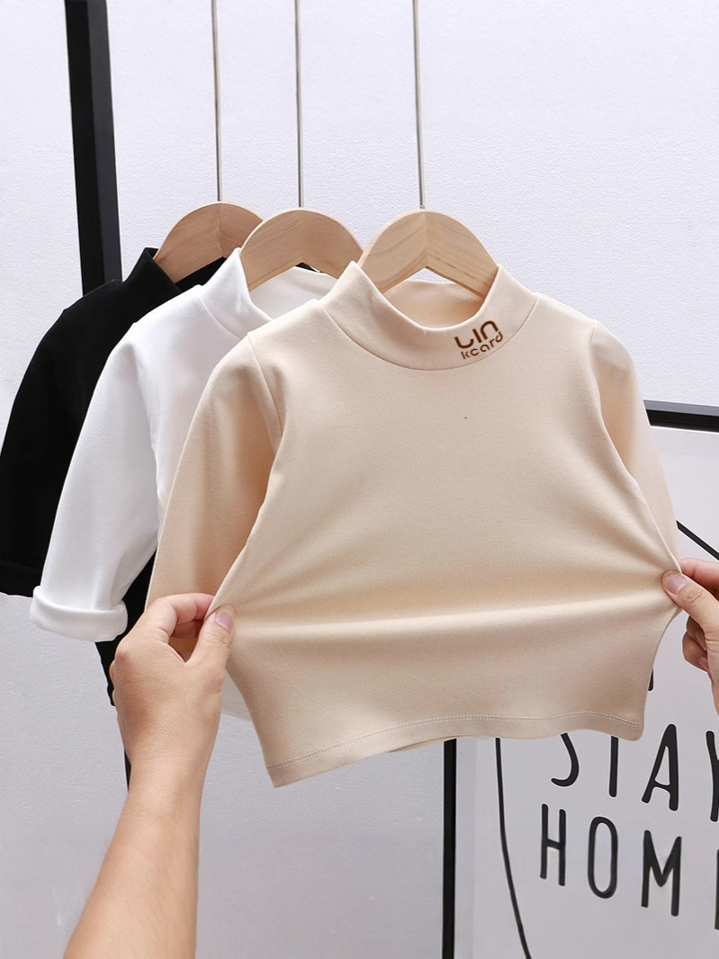 Children's single top elastic warm clothing boys and girls baby long-sleeved high collar bottoming shirt