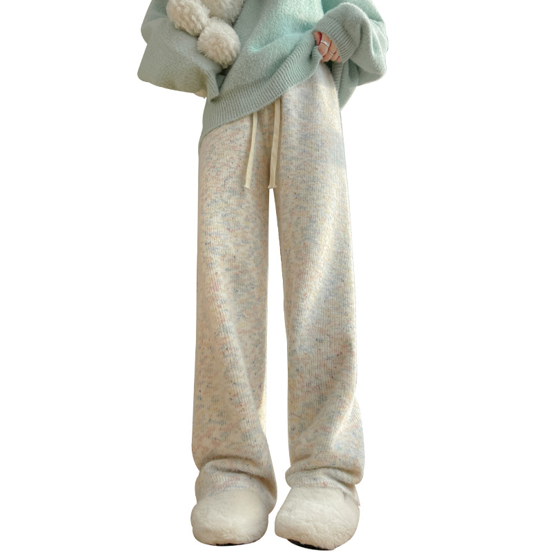 Soft and glutinous drapey floor-length casual pants straight-leg narrow version lazy knitted plus velvet wide-leg pants
